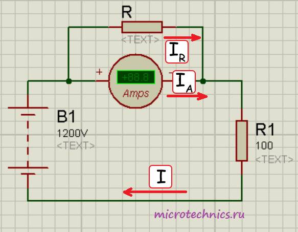 I_R = I_А\medspace \frac{r_А}{R}Измеряемый ток равен: