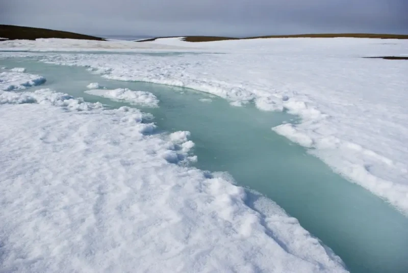 Лето в Арктике характеризуется температурой около 10°C и длится с июня по начало сентября. Полярный день благоприятствует более интенсивному таянию льда.
