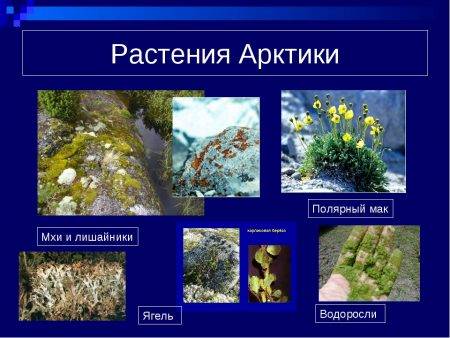 Еще одной особенностью арктической природы является отсутствие деревьев. В зоне, прилегающей к Северному полюсу, есть сотни видов растений, но по большей части это мхи и лишайники. В южных областях встречаются травы, злаковые и кустарниковые.
