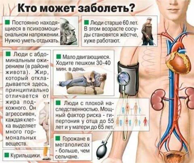 Более распространена первичная (или эссенциальная гипертензия), при которой артериальное давление повышается без видимых причин. Однако есть ряд факторов, увеличивающих вероятность ее развития: