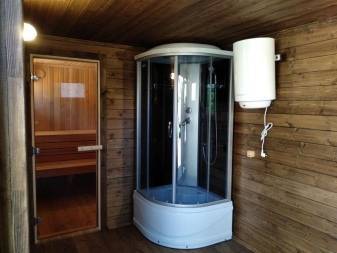 В сауне помывочное отделение находится отдельно, а сделать большое количество пара только с помощью горячих камней и воды сложнее.