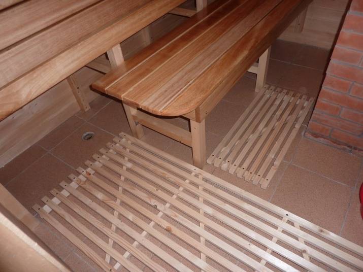 Когда используется парилка, полы быстро остывают, на них образуется конденсат, который делает поверхность скользкой