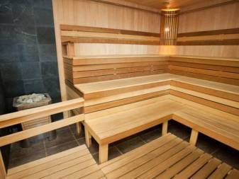 Не каждое дерево подойдет для создания скамеек, используемых в таких условиях. Лучше всего себя зарекомендовали себя береза и осина, поскольку они благотворно влияют на организм человека.