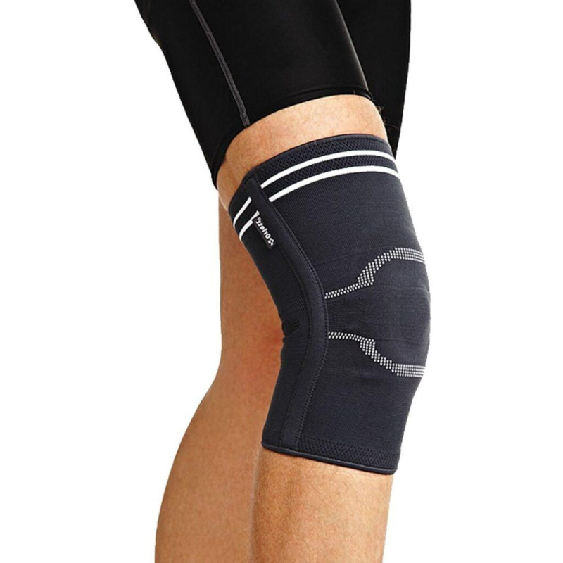 Среднюю степень поддержкиможно осуществить с помощью бандажа из плотной ткани, которая фиксируется с помощью шнуровки или резинки. Наколенник согревает сустав, за счет чего улучшается циркуляция крови, а процесс восстановления проходит значительно быстрее.