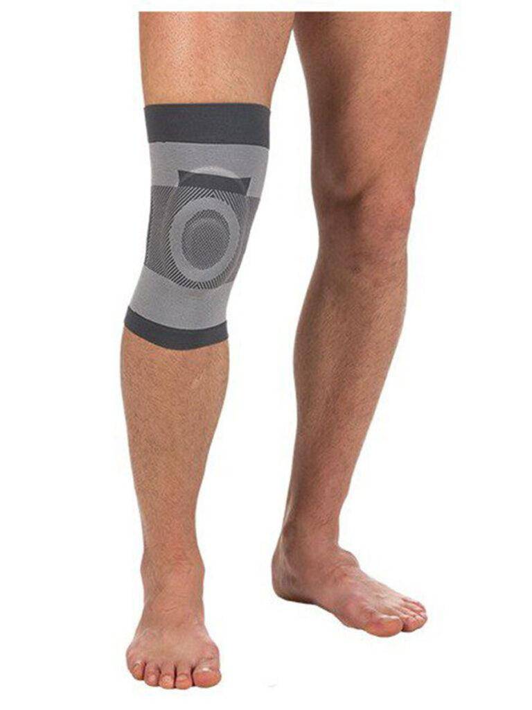 Основой служит текстиль объемной вязки по бесшовной технологии, соответствующий анатомическим особенностям сустава. Ткань (нейлон + спандекс) обладает воздухо-, влагопроницаемыми свойствами. Степень облегания оптимизирована так, чтобы создавать компрессию, равномерно распределяя нагрузку без эффекта жгута.