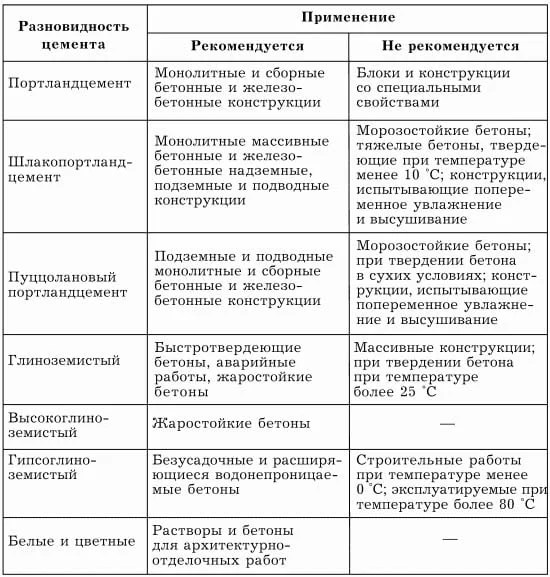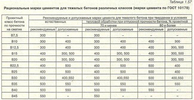 Марка цемента выбирается в зависимости от марки бетона по прочности при сжатии: