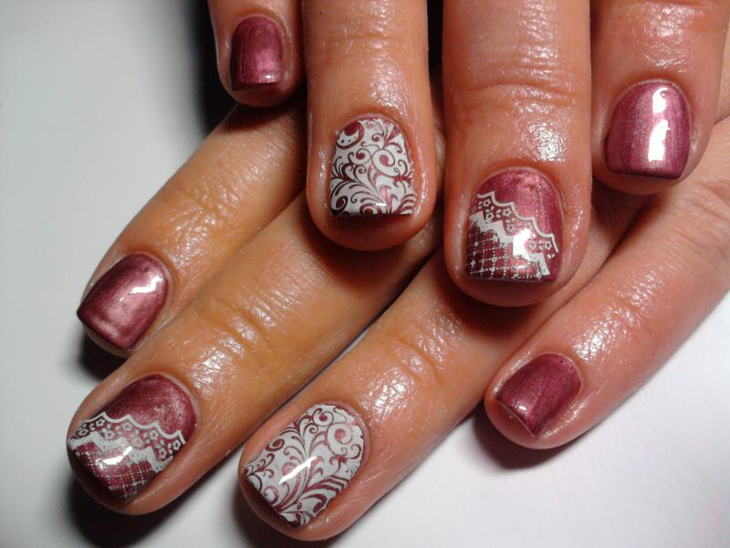 Шеллак обладает отличной цветовой палитрой, на него можно нанести всевозможный дизайн. Существует сотни тысяч варианты маникюра с использованием шеллака: френч, лунный маникюр, обратный френч, градиент и многие другие.
