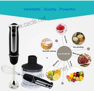 Блендер оснащён острыми ножами, с помощью которых он способен перетереть овощи или фрукты в пюре, супы-пюре, измельчить орехи, делать коктейли и дробить лёд при определённой мощности.