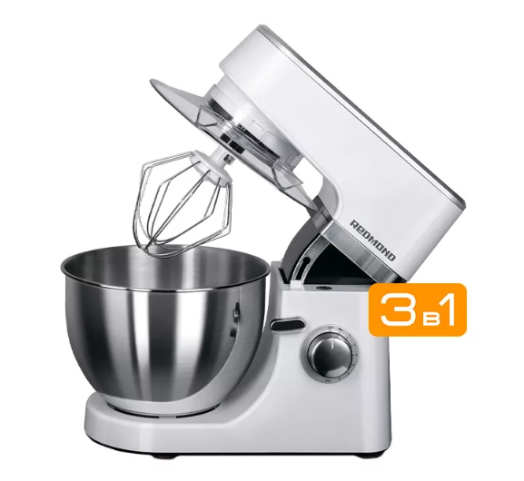 Этот планетарный миксер обладает просто потрясающей мощью в 1,2 КВт. Такой аппарат способен перемешать что угодно, начиная с яичного белка и заканчивая крутым тестом для изготовления пирога или пельменей. В комплекте поставляется три вида насадок: венчик для взбивания, крюк для теста и насадка для перемешивания. Плавная регулировка оборотов позволяет выбрать оптимальную скорость, а импульсный режим можно использовать для максимальной мощности.
