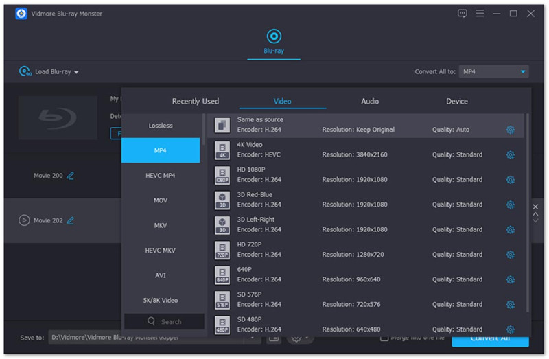 - Конвертируйте диск Blu-ray в видеоформат 4K или 1080p HD, например MP4, AVI, MKV, MOV и другие.