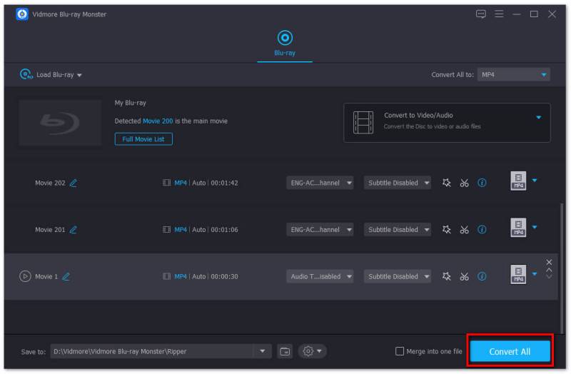 Здесь мы настоятельно рекомендуем мощное программное обеспечение для копирования дисков Blu-ray, Видмор Blu-ray Monster чтобы помочь вам с легкостью извлекать высококачественные фильмы с диска Blu-ray. Это гарантирует, что во время копирования Blu-ray не будет потери качества изображения или звука. Более того, он позволяет конвертировать Blu-ray в любой популярный видеофайл, такой как MP4, MOV, FLV, AVI и другие, в соответствии с вашими потребностями.