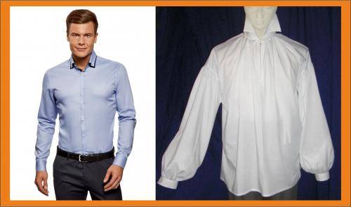 Рубашки же изготавливали из плотных тканей (хлопок, лён, шерсть), так как предназначалось носить сверху наряда. Первые модели рубашек носили через голову, через некоторое время рубашки начали украшать такими деталями, как пуговицы, манжеты, воротники, и шить их стали из дорогих тканей. Рубашка была намного короче сорочки, для нее характерен подшитый округлый низ.