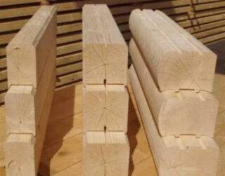 Именуемые таким образом заготовки представляют собой монолитное изделие, фрезерованное из бревна. Характерная особенность – наличие профилированных вырезов, служащих барьером для атмосферных воздушных потоков и облегчающих соединение полуфабрикатов между собой.