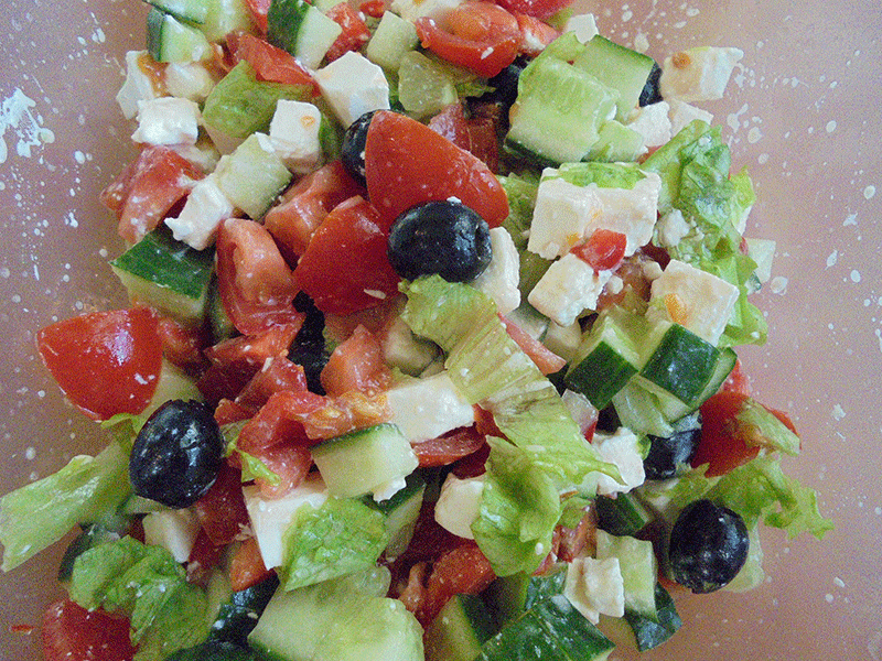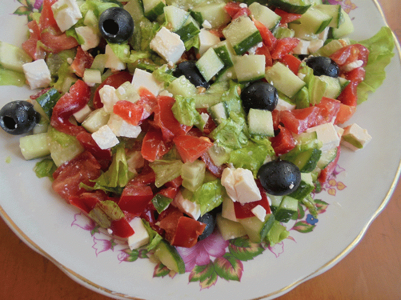 Конечно, как и у каждого салата, получившего всенародное признание, у греческого есть масса вариаций: кто-то добавляет листья салата, делают его и с грибами или креветками и др. Несколько таких вариантов опишу и я.