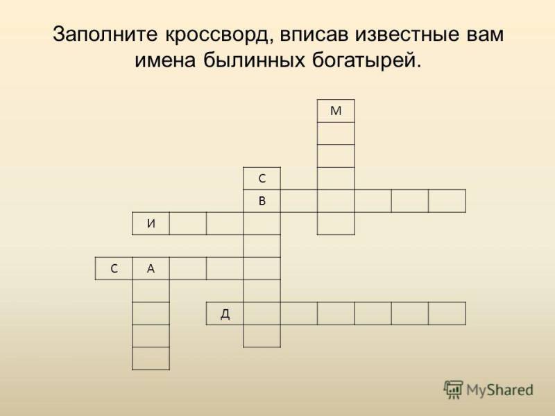 1. Ответьте на вопросы предложенного вам теста (см. раздаточный материал). 2. Напишите мини сочинение (по картине В.М. Васнецова «Богатыри») «Былинные богатыри как выражение национального представления о героях». 3. Составьте цитатный план былины «Илья Муромец и Соловей – разбойник», опираясь на её структурные части. Отъезд Ильи Муромца из Мурома в Киев Победа в первом бою Рассказ черниговцев о Соловье-разбойнике Встреча с Соловьём-разбойником Победа Ильи Муромца Встреча Ильи Муромца с князем Владимиром Сомнения князя Владимира Два приказа Соловью-разбойнику Расправа с Соловьём-разбойником