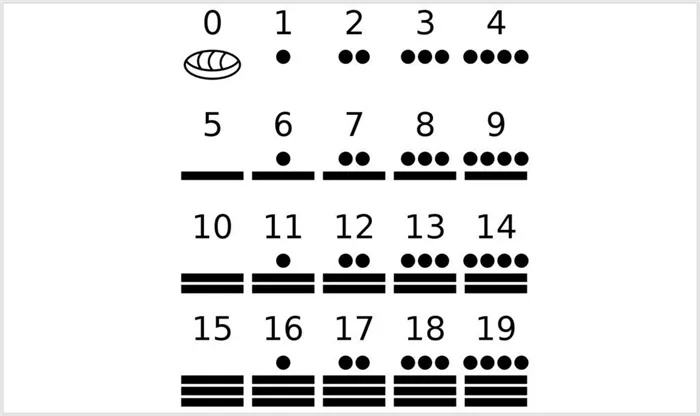 - Цифры майя. Такие знаки использовались для расчетов в календаре.