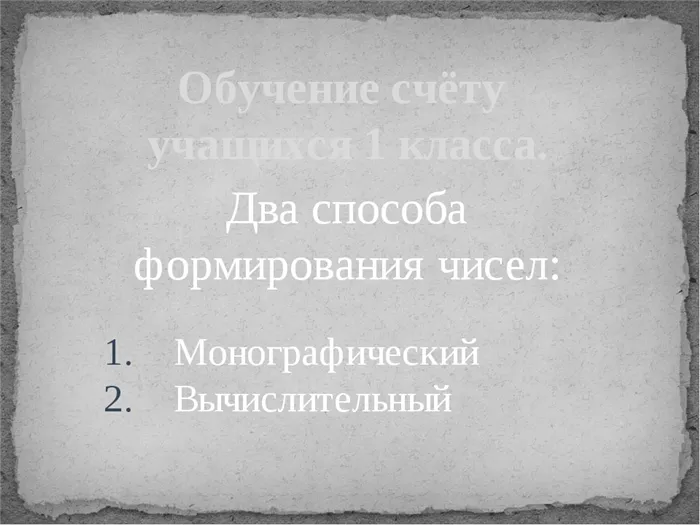 Обучение арифметике первоклассников. Два способа формирования числовых значений: монографические вычисления.