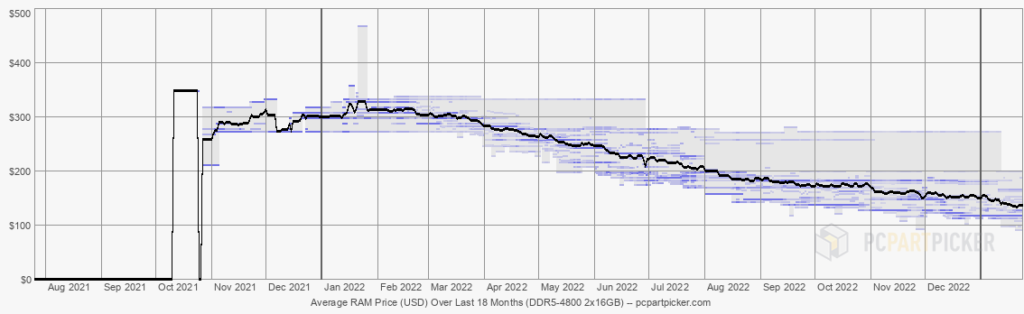 Average cost of a 2x16GB DDR5 4800MHz kit over time | Credit: PCPartPicker