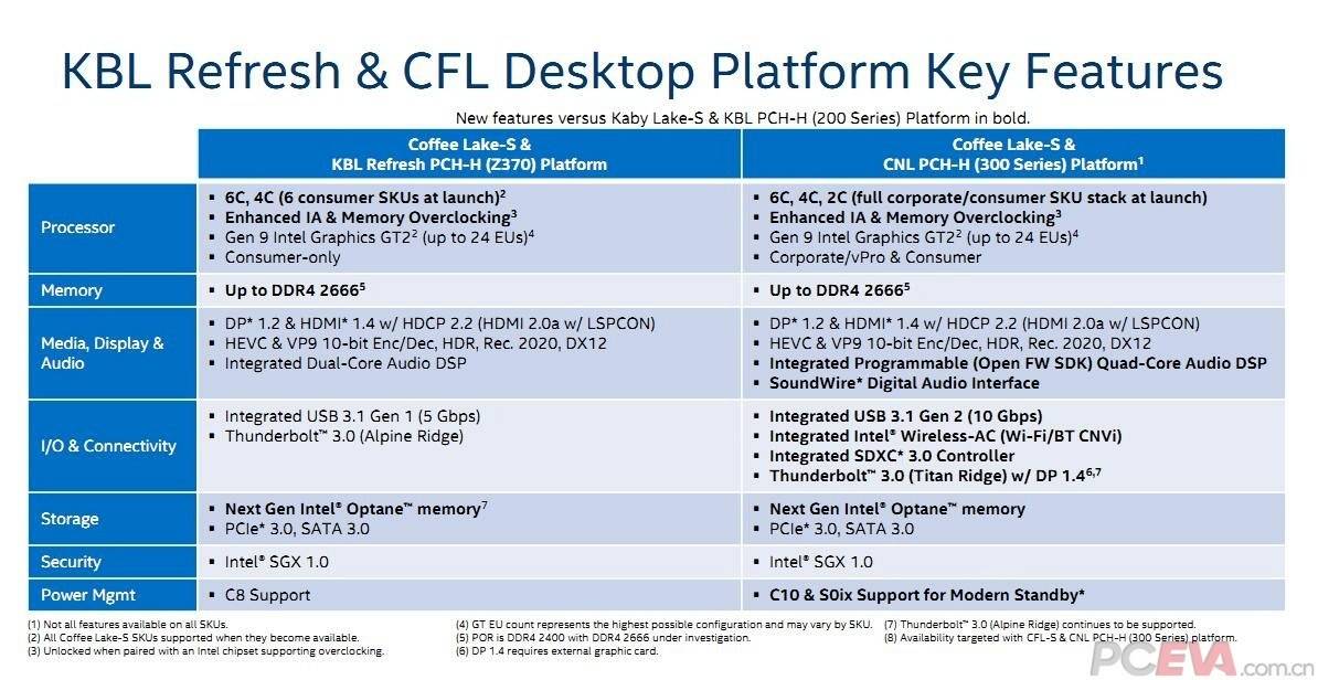 Чипсет Z370 для процессоров Coffee Lake планировался к выпуску вместе с CPU в начале 2018 года и должен был содержать модули Wi-Fi (802.11ac R2 и Bluetooth 5.0) и USB 3.1 Gen2. Однако на фоне давления со стороны AMD компания Intel ускорила работы и передвинула релиз на август, вынужденно отказавшись от этих интерфейсов.