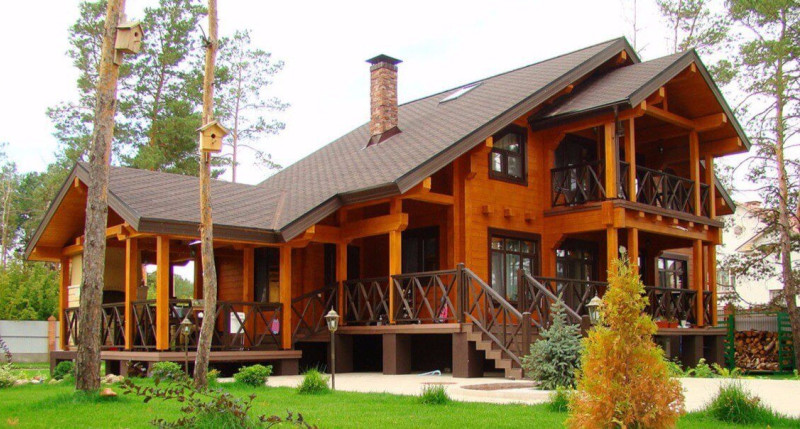 Коттеджи из пеноблоков строят редко. Обычно используют кирпич или древесину, применяют каркасную технологию. Один из лучших и популярных материалов для строительства коттеджа – клееный брус. Его преимущества: