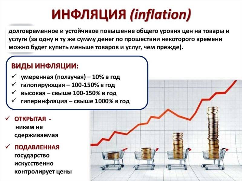 Инфляция – это увеличение ценового уровня на услуги и товары в результате обесценивания и снижения покупальной способности денег либо же когда интерес со стороны потребительский превосходит текущее предложение (на товары или услуги).