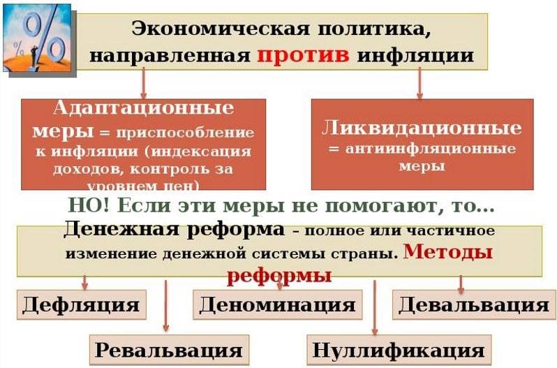 | Увеличение общего уровня цен на товары и услуги | Потеря стоимости национальной валюты по отношению к валютам других стран |