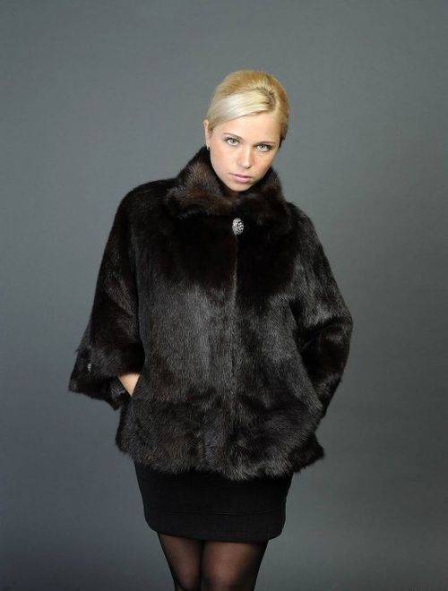 Мех этих зверьков достаточно длинный с естественным блеском, слегка лохматый на вид, шелковистый на ощупь. Подшерсток – высокий. По этим характерным признакам можно отличить русскую норку от подделки. Шубы из него, а это чаще всего длинные манто, получаются теплые, в которых не холодно в любые морозы.
