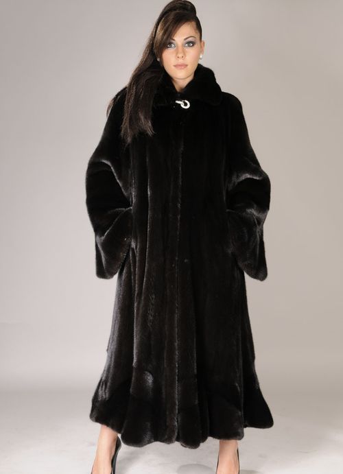 - Классическая удлиненная модель подойдет любительницам частого выхода в свет. Такой образ произведет впечатление струящимся и переливающимся ворсом. Это самый эффектный вариант шубы из меха степной норки.