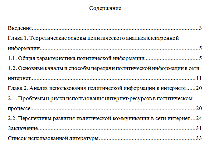 - Список использованной литературы. В данном разделе следует перечислить все используемые источники и литературу, приведенные в работе.