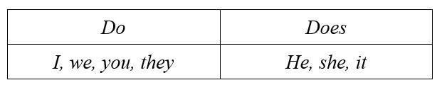 Глядя на второй вариант, можно заметить, что он имеет окончание –es. Это значит, что does в английском языке используется в случаях, когда подлежащим является существительные или местоимения в третьем лице единственном числе. Так, правило do does в виде таблицы можно выразить следующим образом: