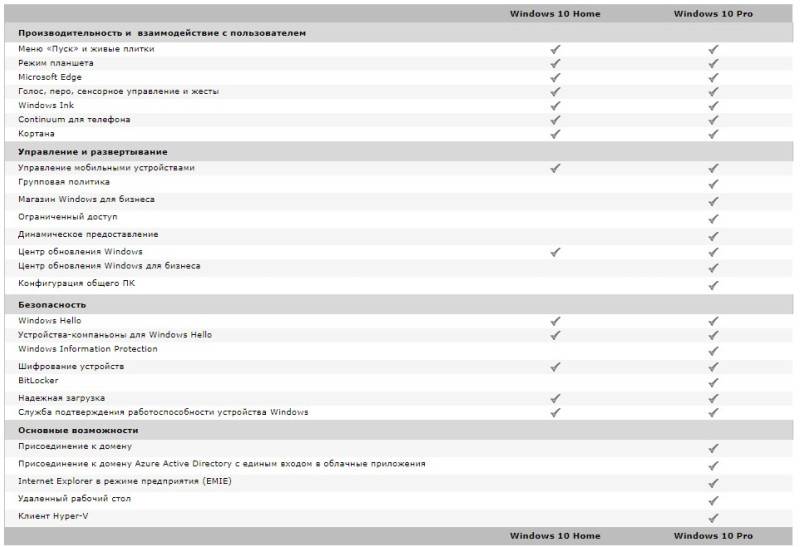 Ниже приведен довольно обширный список, чем отличается домашняя от профессиональной Windows 10. И это только основные параметры, на самом деле есть и другие, менее значимые различия.