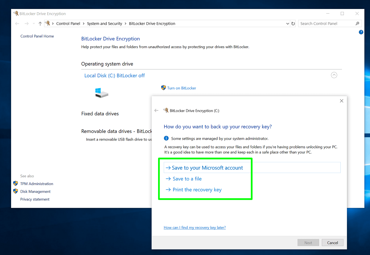 Профессиональная версия поставляется с набором шифрования Microsoft, известным как BitLocker. Компьютер сам выполняет шифрование диска. Человек, не знающий ключа, не будет читать секретную информацию.