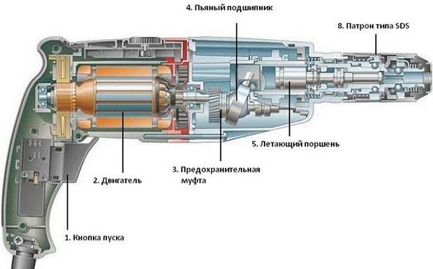 Внутреннее устройство перфоратора нельзя понять без его разборки.