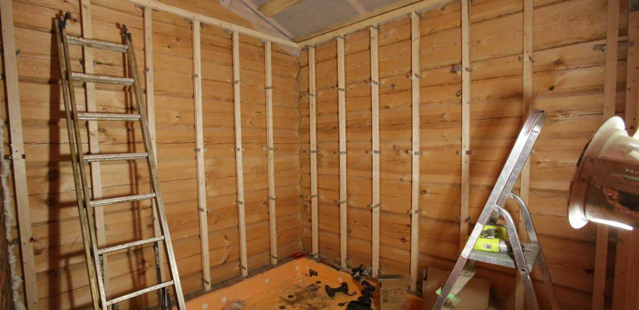 Под монтаж листовых панелей из того же бруса устанавливают вертикальные перемычки. Их ставят с шагом: