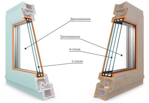 Производители предлагают к продаже 3 вида пластиковых окон – с одно-, двух- и трёхкамерным стеклопакетом. Признано, что для жилых помещений (центр России, Урал и Западной Сибири) оптимальным по стоимости и эффективности вариантом является двухкамерная конструкция. Для Южных регионов достаточно и однокамерной. И только там, где температура воздуха может понижаться до -40°C, целесообразно устанавливать окна с трехкамерным пакетом.