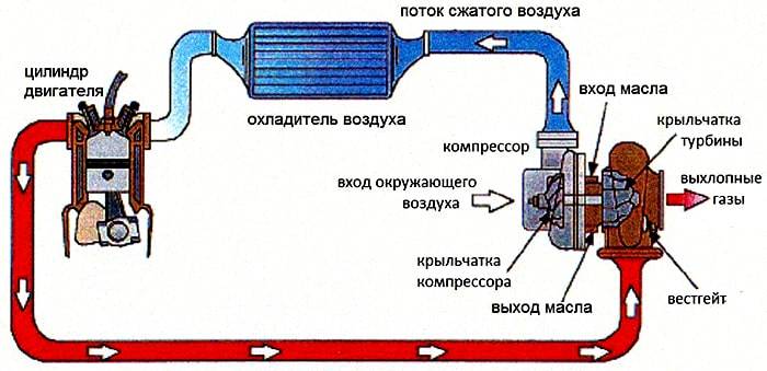 Схема турбонаддува двигателя с турбонаддувом.