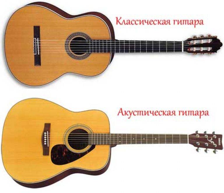 Количество струн в «классической» всегда шесть, а в «акустической» может быть от шести до двенадцати струн (двенадцатиструнная гитара).