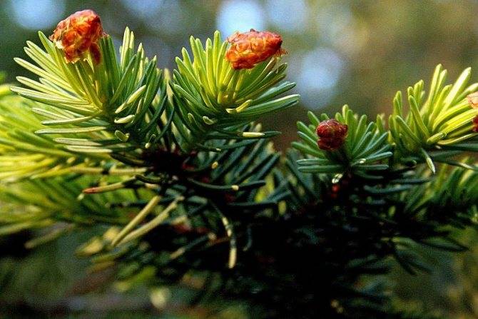 - Наличие шишек. Хвойные не цветут, зато у них есть шишки, позволяющие им размножаться. Они не похожи друг на друга, но формируются одинаково. В момент появления на ветке шишка «стоит» вертикально, а затем принимает горизонтальное положение под тяжестью собственного веса.