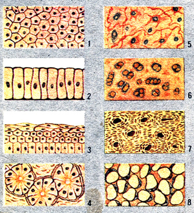 Они бывают плоские, кубические и цилиндрические. Некоторые клетки могут развиваться очень плотно друг к другу, а другие – сохраняют небольшое пространство, которое заполняется тканевой жидкостью.
