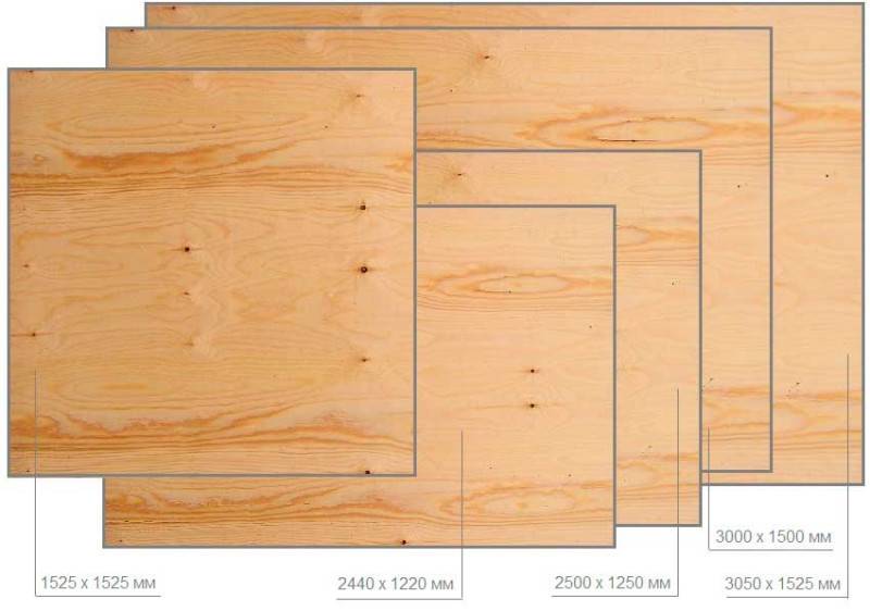 Любая фанера состоит из слоев натурального шпона, прочно склеенных между собой. Отличается только древесина, которая используется для получения шпона, способ расположения тонких слоев и состав для склейки или пропитки. Размеры листов не зависят от этих параметров и могут совпадать у разных видов.