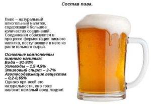 Алкогольная жидкость представлена результатом брожения намоченного и проросшего ячменя — солода и семян хмеля. При дальнейшем процессе ее обогащают углекислым газом, для придания освежающего вкуса. Затем продукт разливается в бутылки, банки либо стальные цилиндрические емкости – кеги. Последний вид тары наполняют только нефильтрованным алкоголем.