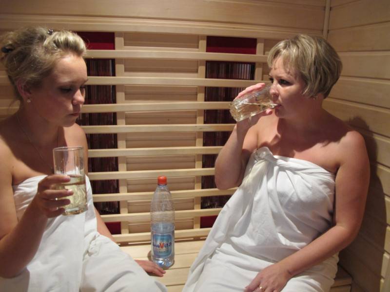 Перед процедурой воздействия на организм инфракрасных лучей не рекомендуется голодать. За полчаса до посещения сауны нужно принять хотя бы немного пищи и выпить минеральной воды в объеме 3-4 стаканов. Если судить по отзывам, польза инфракрасной сауны при этом проявится намного быстрее, а организму в таком случае не грозит обезвоживание.