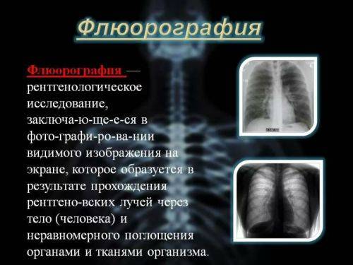 Флюорография – это один из методов рентгенодиагностики, который заключается в принципе фотографирования теней в области органов грудной клетки. Не так давно специалисты применяли метод запечатления лёгких с флуоресцентного экрана с последующим переводом на фотоплёнку, но на сегодняшний день изображения переводятся в цифровое изображение.
