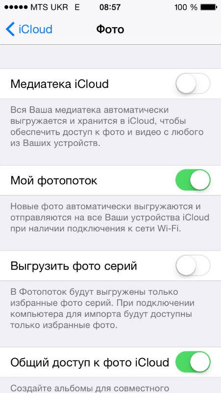 Для размещения фотографий может использоваться «Мой фотопоток» или «Медиатека iCloud». Рассмотрим обе возможности подробнее.