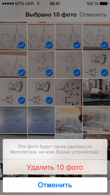 Даже доступна процедура удаления фото. Но в этом случае стоит предупредить, что удалив «Мой фотопоток» все сделанные фотографии и сохраненные в этом хранилище будут удалены