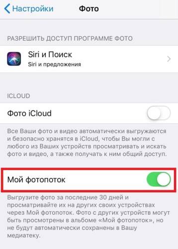 (устройства на iOS 8 и выше) или «Фотопоток»
