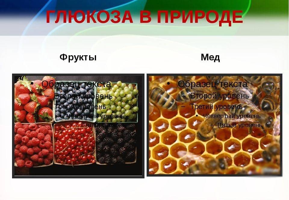 На втором месте по содержанию в натуральном меде стоит глюкоза, ее разные сорта имеют в составе не более 45%. Именно она является эталоном для определения гликемического индекса любых продуктов и служит источником «быстрой» энергии для организма.