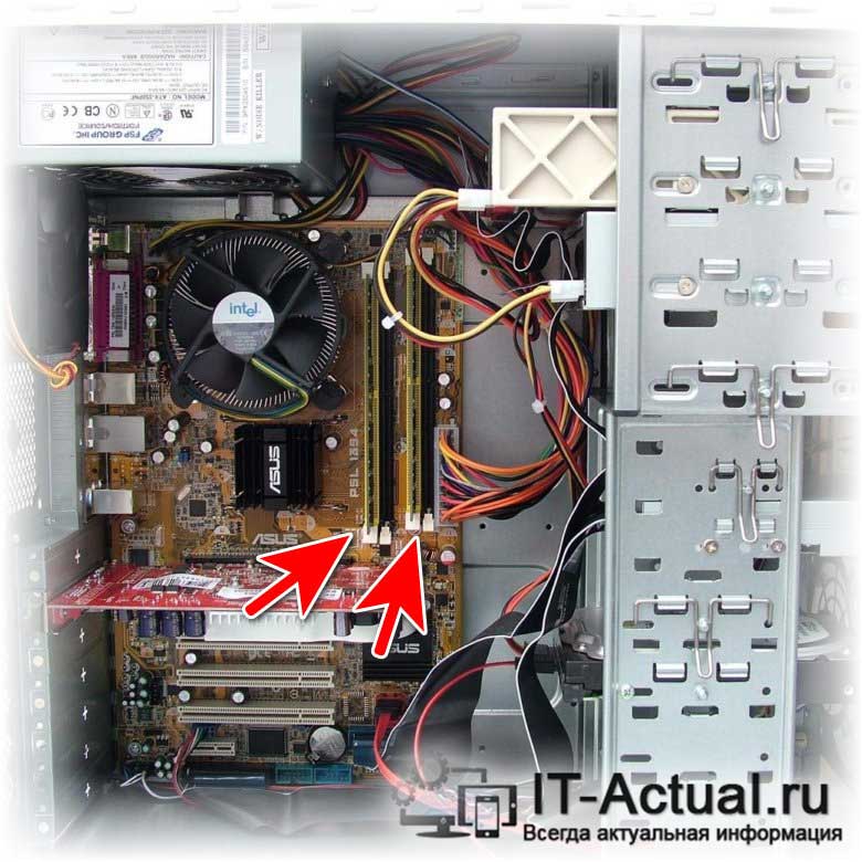 Со стационарными компьютерами всё предельно просто – открываете боковую крышку и получаете доступ к материнской плате, в которую вставлены плашки оперативной памяти. Извлекаете одну из них и смотрите, что указано на плашке. Также сразу можно увидеть, сколько свободных слотов имеется для установки плашек памяти.