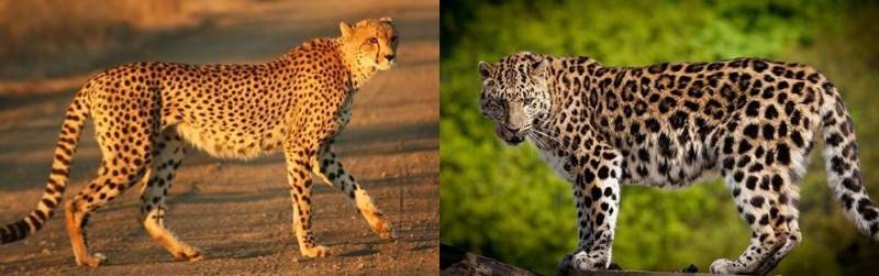 охотясь на своих жертв из засады, используя эффект внезапности. В связи с этим, оба данных вида очень трудно различить человеку, не являющемуся профессиональным зоологом. Гораздо больше отличий между леопардами/ягуарами и гепардами.
