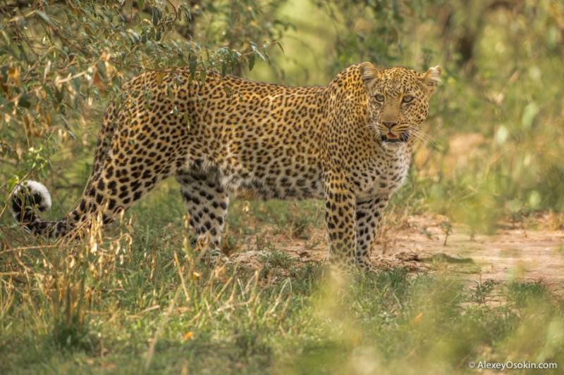 Леопард отлично лазает по деревьям, поэтому часто прячет добычу в ветках, и спит преимущественно на деревьях. Пятнистый окрас помогает им успешно прятаться в листве и в траве. Леопарды способны подкрасться к жертве на очень близкое расстояние даже в невысокой траве высотой до 30-40 см, это совершенный хищник, быстрый и бесшумный.